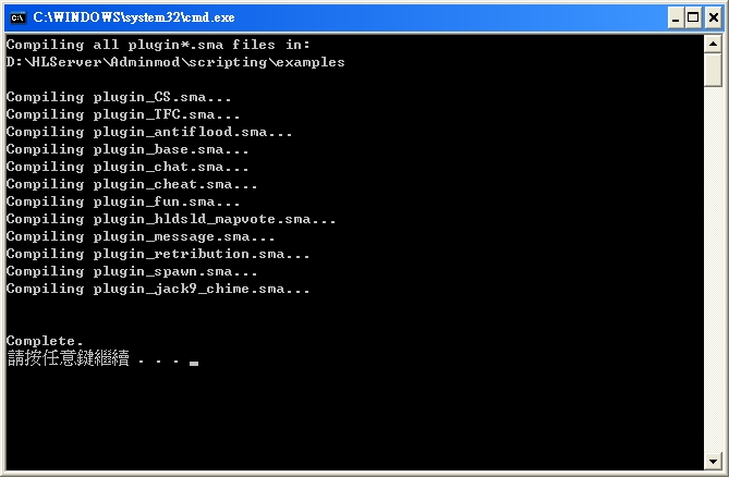 5.把檔案丟到D:\HLServer\Adminmod\scripting\examples並點選compile_all.bat執行編譯