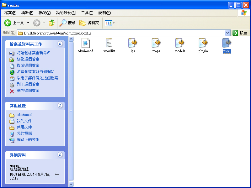 1.到D:\HLServer\cstrike\addons\adminmod\config找users.ini