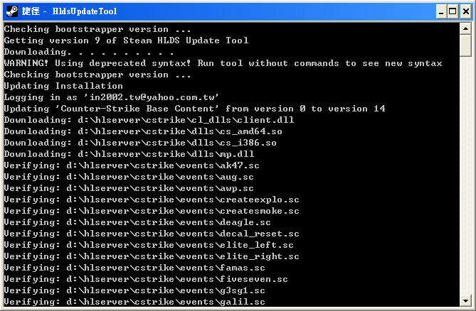 變成D:\HLServer\HldsUpdateTool.exe -update cstrike D:\HLServer