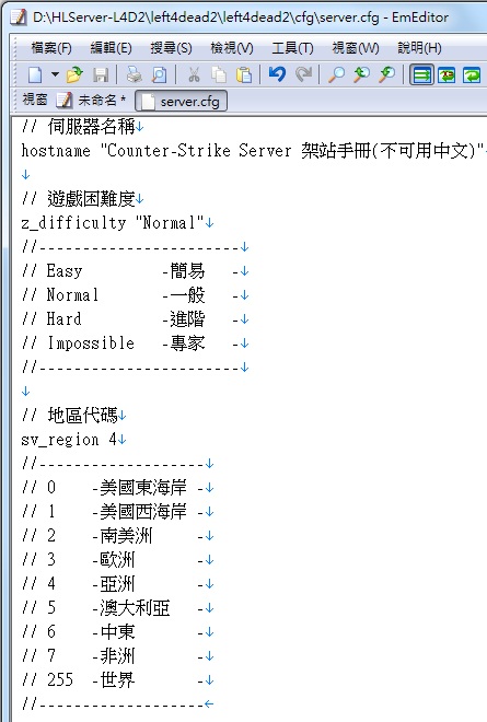 2.檔案下載完畢後請到D:\HLServer\left4dead2\left4dead2\cfg新增一個server.cfg