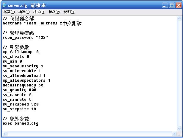 5.下載完後到D:\HLServer-TF2\orangebox\tf\cfg裡面建立一個server.cfg檔